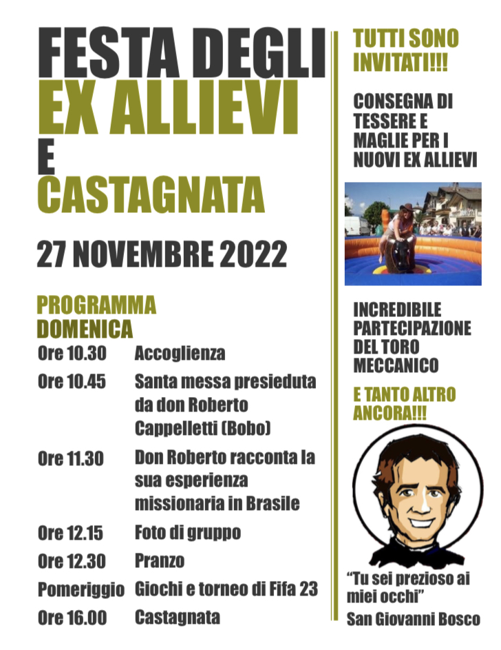 Domenica 27 novembre tutti gli ex allievi dell'Istituto Salesiano S. Croce sono invitati a partecipare ad una festa ricca di divertimento e perchè no, di …